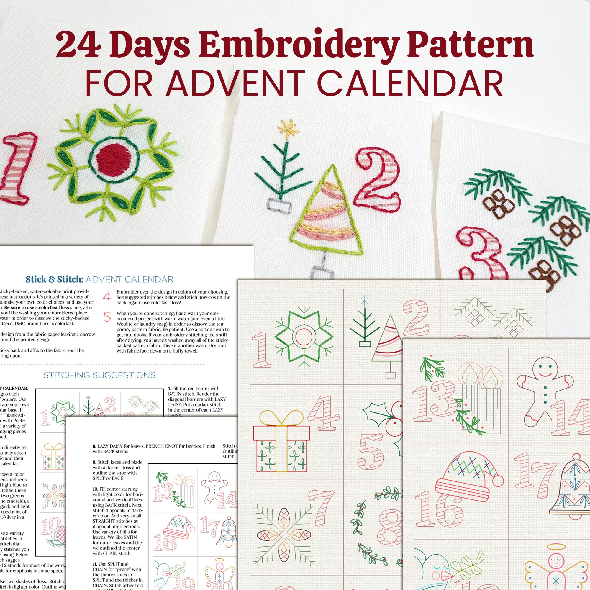 24 Days Advent Calendar Stick and Stitch Embroidery Pattern, Sulky